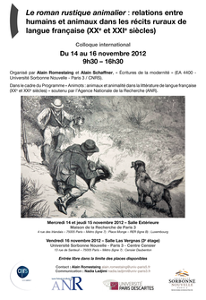 Organisé par Alain Romestaing et Alain Schaffner, dans le cadre du Programme « Animots : animaux et animalité dans la littérature de langue française (XXe et XXIe siècles) » soutenu par l’Agence Nationale de la Recherche (ANR).