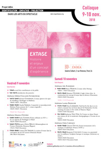 Extase. Histoire et enjeux d’un concept d’expérience Du 9 novembre 2018 14:00 au 10 novembre 2018 16:15 INHALe 9 Salle Mariette et le 10 salle Benjamin 2 rue Vivienne 75002 Paris /B_mots>