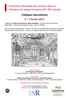 Histoire(s) naturelle(s) des animaux dans la littérature de langue française (XXe-XXIe siècles) Colloque international
