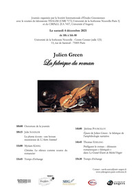 Julien Green. La fabrique du roman Samedi 4 décembre 2021 10:00-16:00 Université de la Sorbonne Nouvelle - Centre Censier (salle 123)13, rue de Santeuil - 75005 Paris /B_mots>