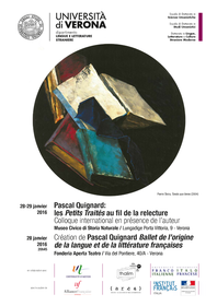 Scritti sin dagli anni Settanta e raccolti in volume nel 1990, i Petits traités di Pascal Quignard, voce tra le più rilevanti nell’attuale panorama letterario francese, costituiscono allo stesso tempo un corpus diversificato per genesi, caratteristiche generiche e dominanti tematiche e una raccolta coesa e ricca di risonanze rispetto alle altre opere poetiche, narrative, saggistiche dell’autore. Rappresentano altresì un precoce insieme di riferimento nell’ambito delle fictions critiques, biofictions e altre modalità di ibridazione tra finzione narrativa e saggistica, autoritratto letterario e vite immaginarie che caratterizzano la letteratura contemporanea. Il convegno mira a ritornare, venticinque anni dopo la loro pubblicazione in raccolta e da angolazioni critiche diverse (analisi puntuali, studi di insieme e comparativi, con particolare attenzione alla dimensione intertestuale) sulla rilevanza dei Petits traités alla luce dell’evoluzione dell’opera, dagli scritti degli anni Sessanta fino al vasto ciclo di Dernier Royaume, giunto nel 2014 al suo nono tomo con Mourir de penser.