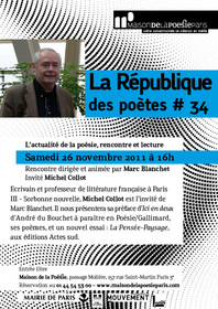 Rencontre et lecture le samedi 26 novembre 2011 à 16h, dirigée et animée par Marc Blanchet, avec pour invité Michel Collot.