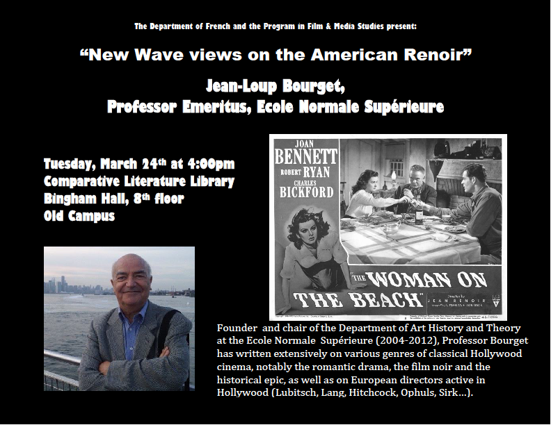 Jean-Loup Bourget fera une conférence "New Wave views of the American Renoir" à l’invitation du département de français et du programme d’études en cinéma et médias de l’Université de Yale (USA)