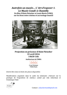 Projection exceptionnelle du film L’Art d’exposer 1, le Musée Condé à Chantilly , réalisé par Alain Fleischer et commenté par Louis Marin en 1982 Projection et mise en scène