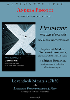 présentation du livre d’Andrea Pinotti : L’Empathie, histoire d’une idée de Platon au posthumain (2016) traduction française de l’ouvrage paru en italien en 2011