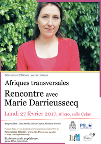 Afriques Transversales a la joie de recevoir pour sa deuxième rencontre de l’année 2017 Marie Darrieussecq. Son roman Il faut beaucoup aimer les hommes (P.O.L, 2013) interroge le fonctionnement d’un couple mixte et propose une relecture du stéréotype africain dans l’imaginaire occidental. Sous l’auspice de ces amours « insupportables » qu’évoquait Marguerite Duras, la rencontre sera l’occasion de revenir avec l’auteur sur les enjeux d’un traitement littéraire de l’altérité – qu’elle soit animale, humaine, auctoriale ou fantomatique.