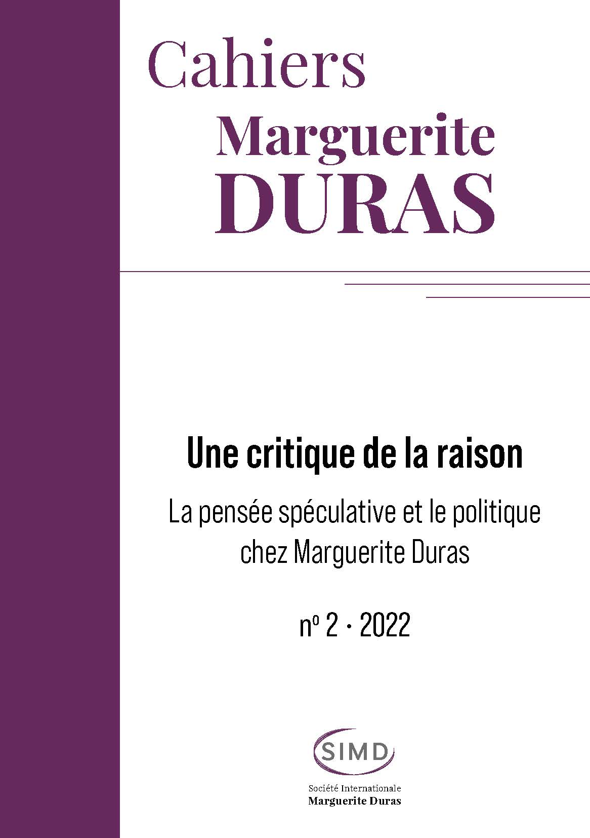 (dir.), « Une critique de la raison. la pensée spéculative et le politique chez Marguerite Duras », Cahiers Marguerite Duras , n°2- 2022, Mars 2023