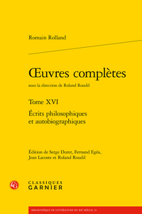 , Serge Duret, Ferrand Egéa, Jean Lacoste (dir.), Romain Rolland, Œuvres complètes. Tome XVI Écrits philosophiques et autobiographiques, Classique Garnier, 2024