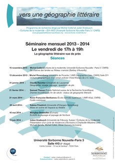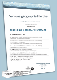 Poursuivant la réflexion engagée depuis deux ans dans ce séminaire sur l’autobiogéographie, nous concentrerons notre attention sur le rôle qu’y joue la mémoire. Celle-ci revêt une double dimension, (...)