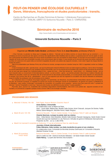 Ce séminaire propose de lire les littératures du Sud (essentiellement d’Afrique du Nord et d’Afrique subsaharienne) à l’aide de méthodes issues des sciences humaines et sociales : histoire, sociologie, (...)