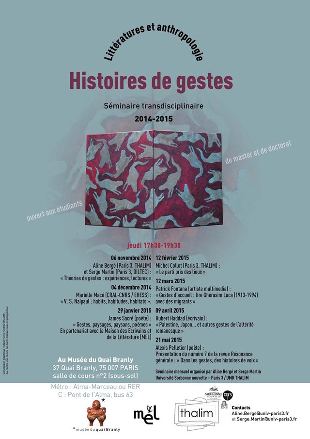 Littératures et anthropologie : Histoires de gestes Séminaire Transdisciplinaire 2014-2015 de Thalim