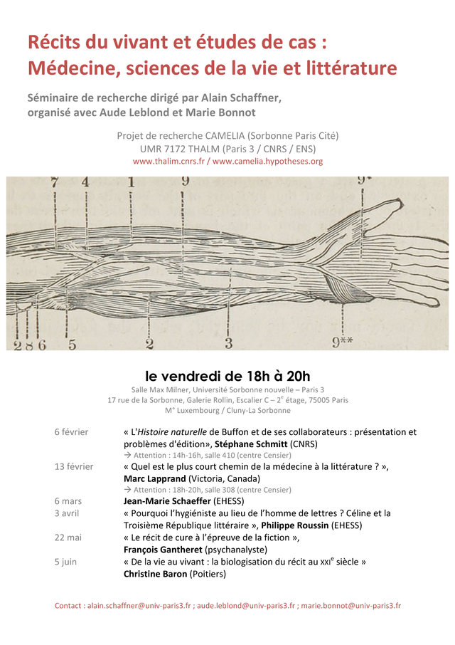 Ce séminaire de recherche s’inscrit dans le cadre du projet scientifique du PRES Sorbonne Paris Cité CAMELIA qui rassemble des équipes de recherche des universités Paris-Descartes et Sorbonne Nouvelle-Paris 3. Multidisciplinaire et transhistorique, le projet s’articule autour de la notion de casuistique médicale éthique du XVIIIe siècle à nos jours, dans une approche qui associe l’éthique médicale, la littérature, la linguistique et la philosophie.